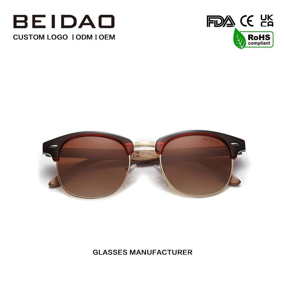 النظارات الشمسية المصنوعة من خشب الجوز المستقطب باللون البني المتدرج مصنوعة من معدن عالي الجودة ولا تتلف بسهولة.