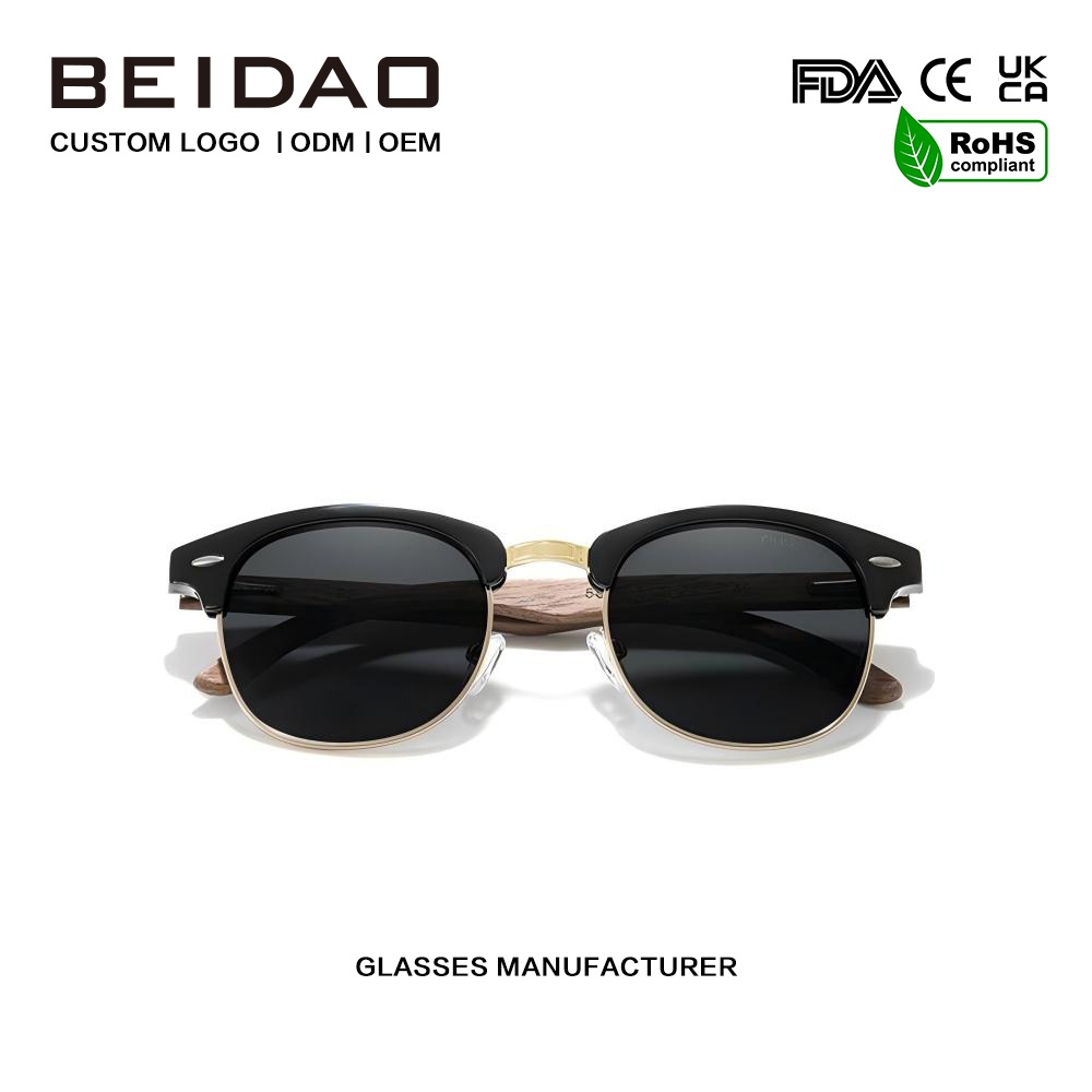 النظارات الشمسية الرجالية الجديدة المصنوعة من خشب الجوز المستقطب مصنوعة من معدن عالي الجودة ولا تتلف بسهولة.